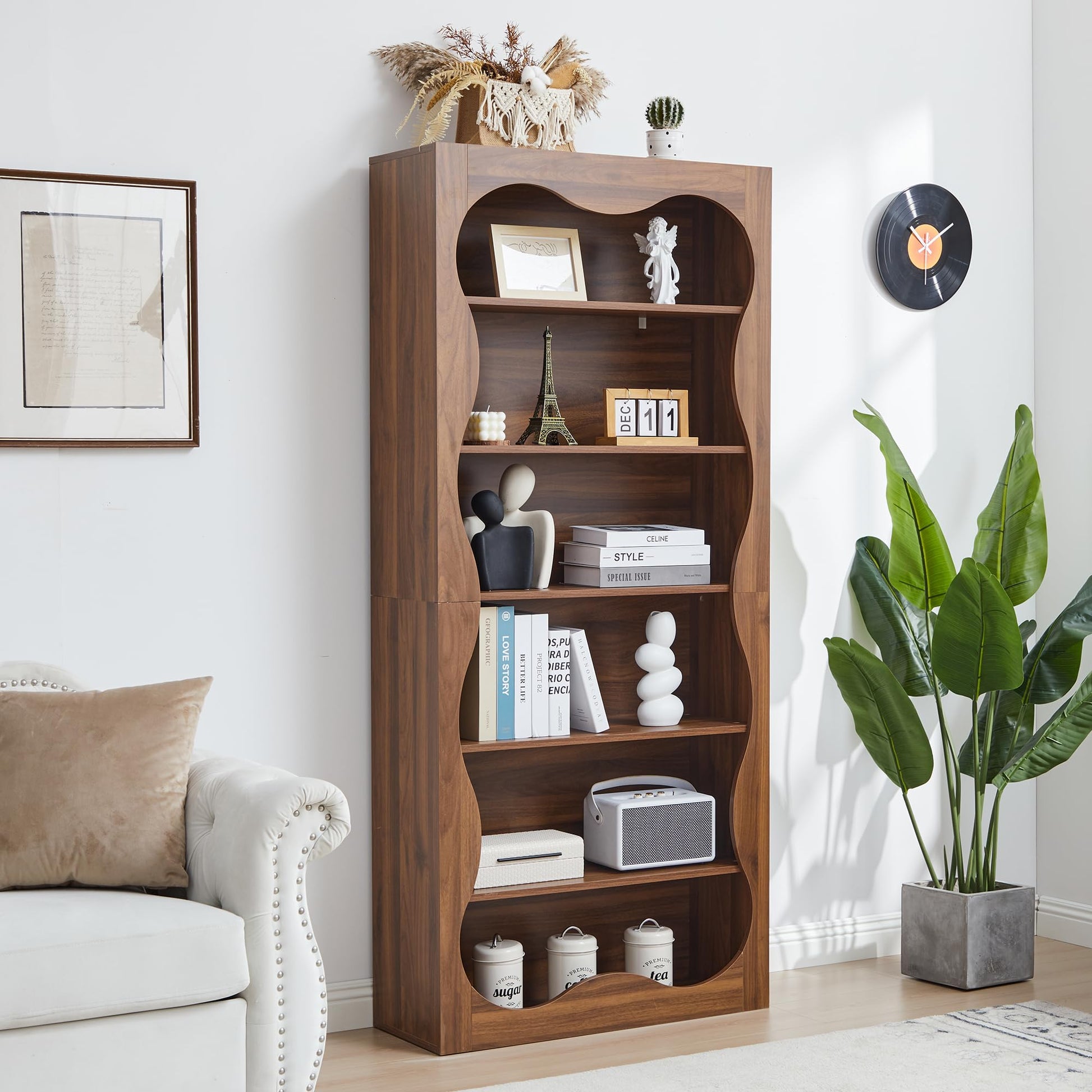 - This cute bookshelf combines a distinctive wavy-line border with sleek, contemporary design, offering both versatility and durability to seamlessly enhance any space. Whether you aim to organize your belongings, showcase cherished items, or add an artistic touch to rooms such as living areas, bedrooms, or offices, its modern aesthetics and functional storage capabilities ensure it effortlessly adapts to your lifestyle
